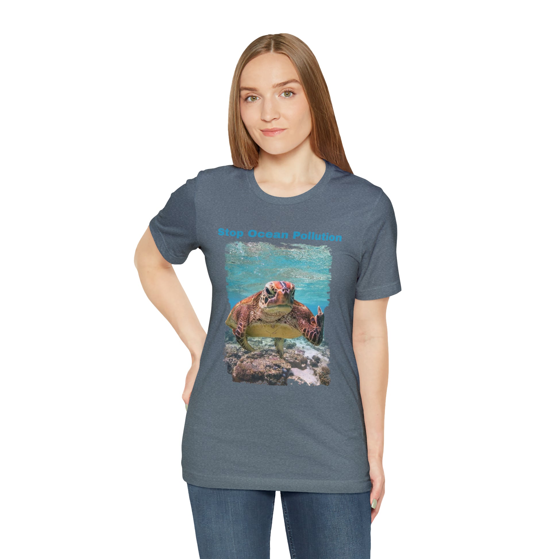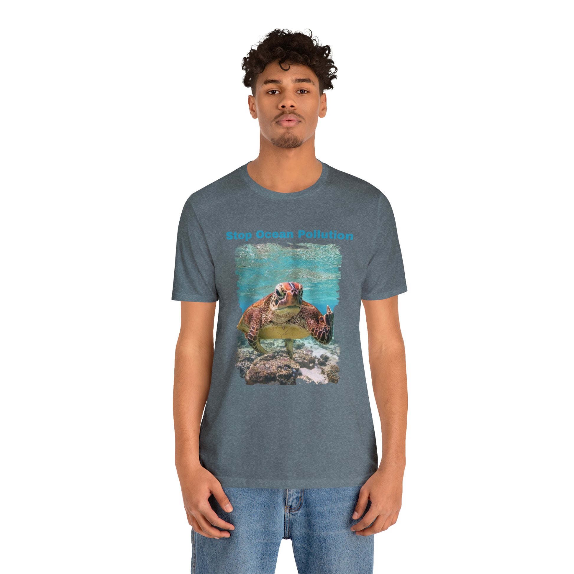 This classic unisex jersey short sleeve tee fits like a well-loved favorite and is made to bring awareness to pollution of the oceans. Soft cotton and quality print make users fall in love with it over and over again. These t-shirts have-ribbed knit collars to bolster shaping. The shoulders have taping for better fit over time. Dual side seams hold the garment's shape for longer.